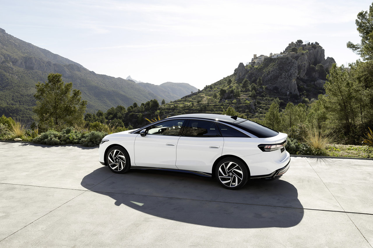 The ID.7's stunning exterior is not only visually appealing but also designed to optimize performance. Measuring 195.3 inches in length, the vehicle's roofline slopes gracefully towards the rear, reminiscent of a coupe, contributing to a remarkable drag coefficient of just 0.23. The spacious interior is further enhanced by the long wheelbase and short overhangs, providing ample room for passengers to relax.